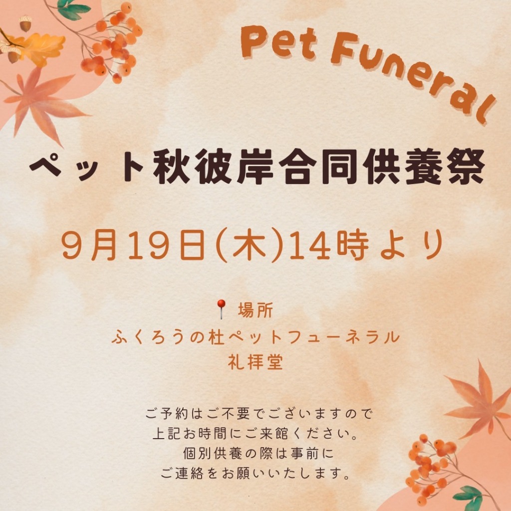 さて、秋のお彼岸合同供養祭を下記の日程で執り行います。
